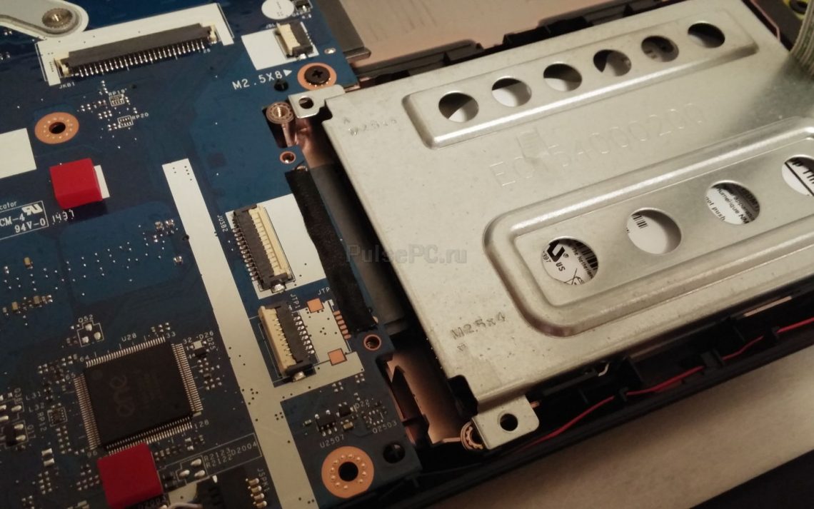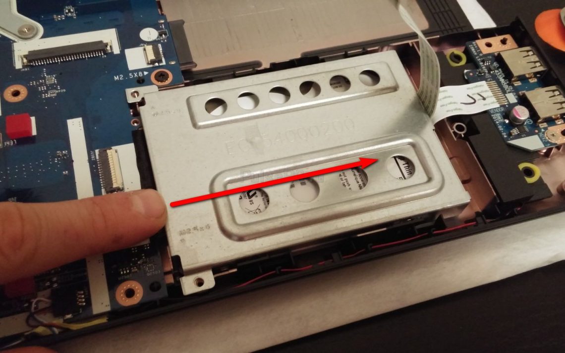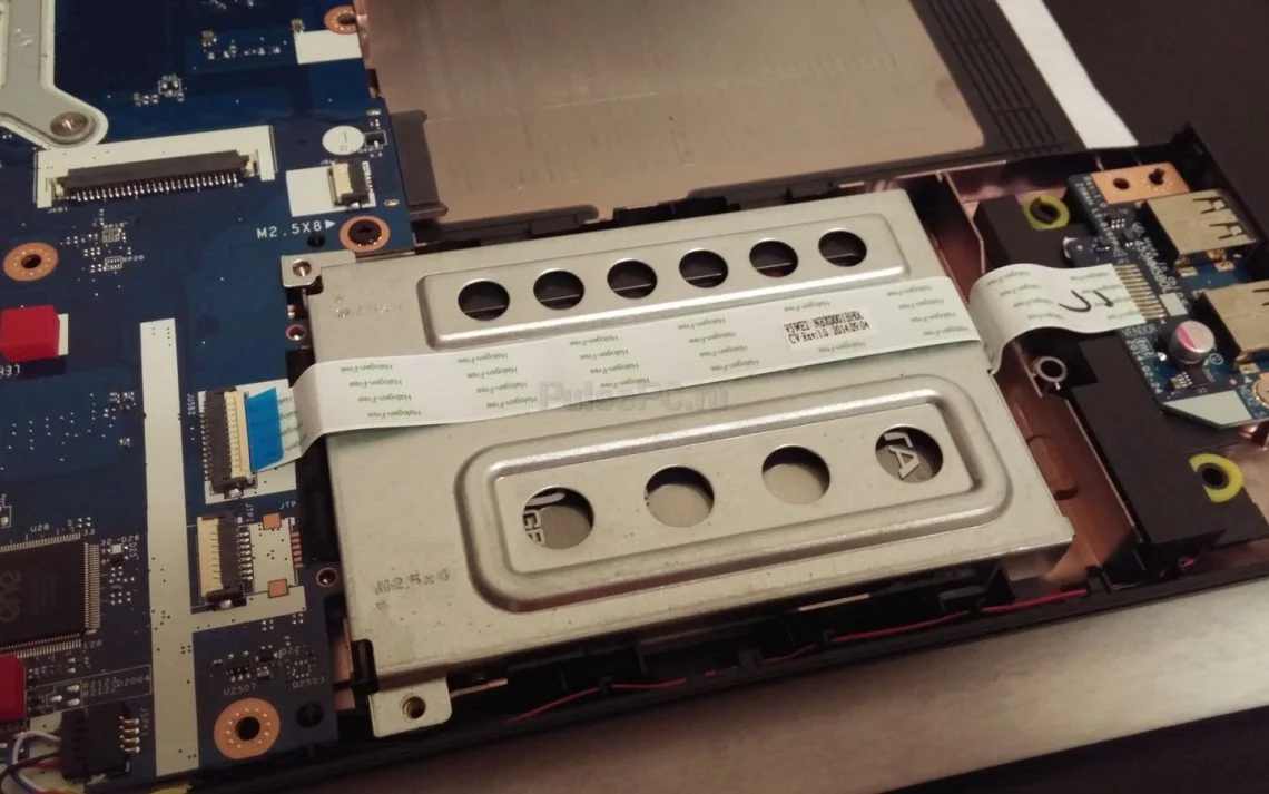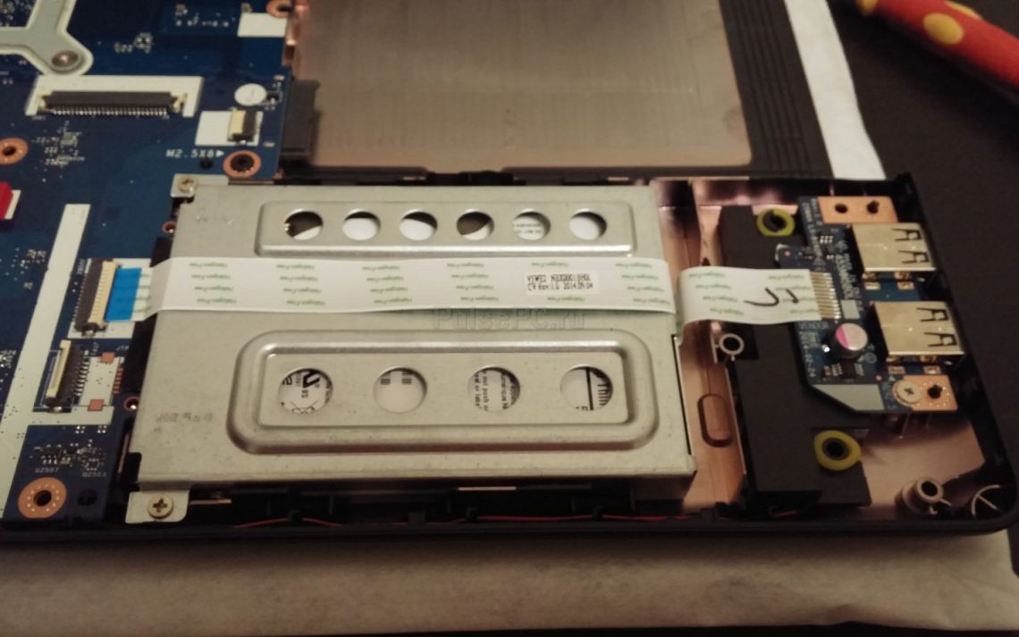 Наконец-то мы видим жёсткий диск, он закрыт шлейфом от USB.