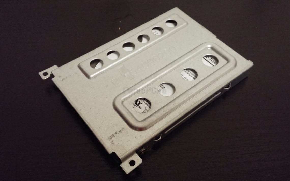 Корзинка рассчитана на 9мм накопитель, а у меня (и скорее всего и у Вас) толщина 7мм, поэтому я приклеиваю специальный переходник. Это делать не обязательно, и так всё нормально держится, но я очень люблю, когда всё чётко. Если корзинка