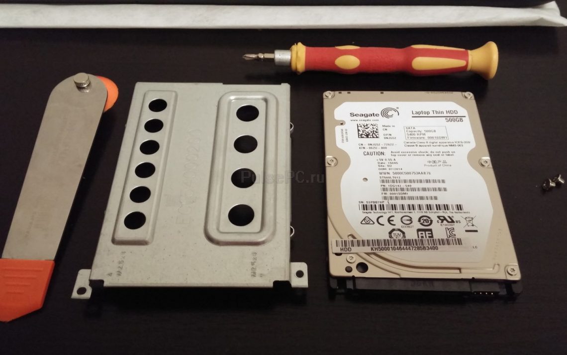 Вынимаем жёсткий из корзинки. Там всего два болта, я фотографировать не стал, и ежу будет понятно