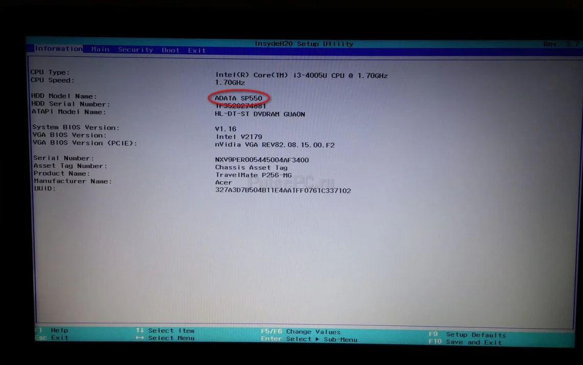 Включаем, заходим в BIOS (F2), смотрим, отобразился ли накопитель. У меня — да!