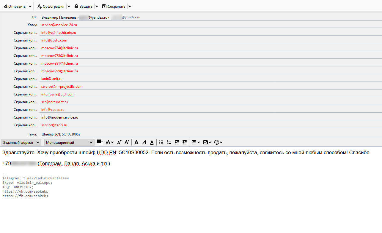И пишу им всем одинаковое письмо с просьбой продать мне шлейф