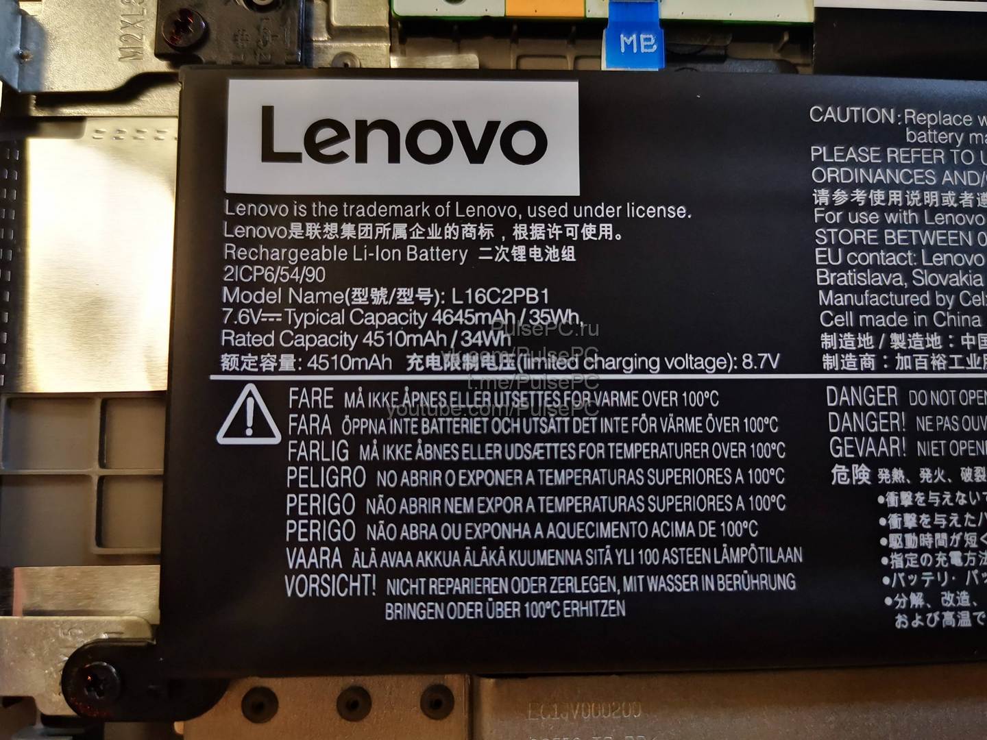 Модель аккумулятора L16C2PB1. Напряжение 7.6 Вольт, ёмкость — 4645 mAh, мощность 35 Ватт, номинальная ёмкость 4510 mAh/34 Ватт, предельное напряжение 8.7 Вольт.