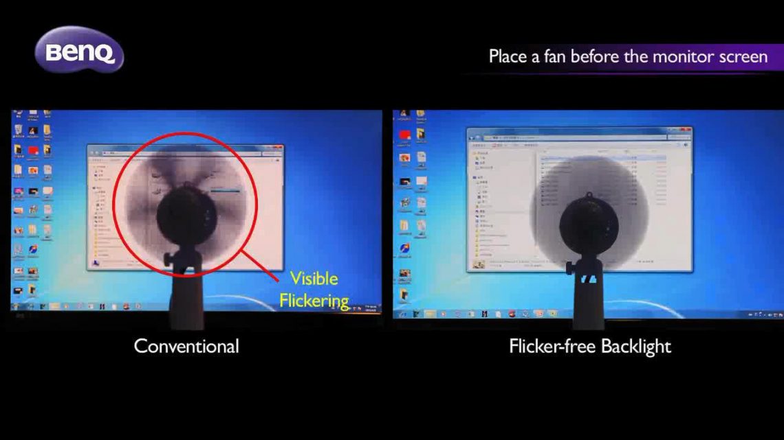 Специалисты компании BenQ разработали технологию Flicker-Free для регулировки яркости мониторов, для подсветки кристаллов в которых используются светодиоды. При использовании этого метода управление яркостью светодиодов регулируется изменением подаваемого на них напряжения. При этом светодиоды светятся непрерывно. В результате удается добиться отсутствия мерцания независимо от уровня яркости. Поэтому резко повышается комфорт работы пользователя за таким монитором. Компания BenQ реализовала использование своей фирменной технологии в мониторах BenQ GL2706PQ, BenQ PV270, BenQ PV32000PT и других. Все они относятся к мониторам высокой ценовой категории.