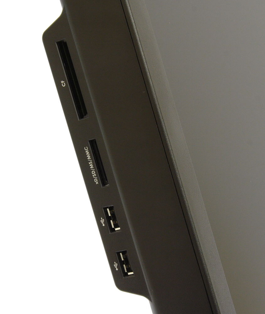 Philips 19S4QAB, мощность колонок – 1,5 ватта, аудиовход миниджек 3,5 мм, также есть разъем для подключения наушников. Разъемы находятся на нижнем торце выступающей части задней панели монитора.Как видно из приведенных примеров, мониторы могут иметь различия, как в мощности встроенных колонок, так и в способе их соединения со звуковой платой компьютера. Поэтому нужно обратить внимание на эти параметры при выборе монитора, чтобы достичь максимально удобной настройки и работы звуковой системы рабочей станции.Встроенный USB-хабДля кого-то эта опция востребована, но, в основном, ориентироваться на нее не стоит. Производители корпусов системных блоков уже давно заботятся об удобстве пользователей, и выносят разъемы USB на переднюю или боковую часть для работы с носителями информации этого типа. Если же USB-хаб на мониторе необходим в силу специфики расположения оборудования (например, системный блок находится далеко от рабочего места оператора), то выбирайте мониторы, во-первых, с соответствующей версией стандарта USB (2.0, 3.0) , а во-вторых, с удобным расположением разъемов под флеш-накопители. Согласитесь, что не совсем удобно оперировать с диском, вставляя его в разъем на задней панели монитора. Для подключения к концентратору USB компьютера в мониторах обычно используется разъем типа B. При покупке монитора нужно убедиться, что производитель включил в комплект поставки соответствующий кабель, иначе придется закупать его самостоятельно.