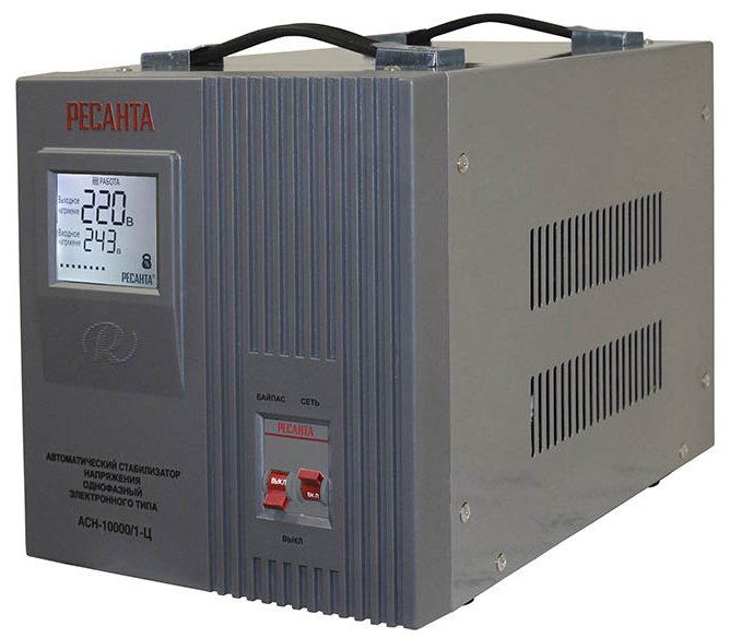 Напольный однофазный стабилизатор релейного типа, предназначенный для обеспечения бесперебойной работы устройств и оборудования в условиях нестабильного напряжения в электрической сети. Максимальная мощность в 10000 ВА позволяет без опасений подключать к его выходным цепям даже силовые агрегаты с большим пусковым током. Это могут быть системы кондиционирования и вентиляции, различное насосное оборудование, а также другие установки, содержащие электродвигатели. По сравнению со многими другими стабилизаторами, данная модель имеет несколько особенностей. Во-первых, устройство поддерживает возможность подключения нагрузки в режиме «байпас», причем коммутация выполняется при помощи двухсекционного автомата с блокировкой их одновременного включения. Во-вторых, входные и выходные цепи стабилизатора оснащены средствами для фильтрации сетевых помех, что предотвращает ложное срабатывание защиты, например, от работающего по соседству сварочного аппарата. В-третьих, наличие мощных силовых цепей обуславливает использование принудительной системы охлаждения, поэтому работа устройства сопровождается небольшим шумом вентилятора. Наконец, показ на дисплее условного значения выходного напряжения, не всегда соответствующего его реальной величине, является достаточно спорным решением.